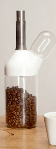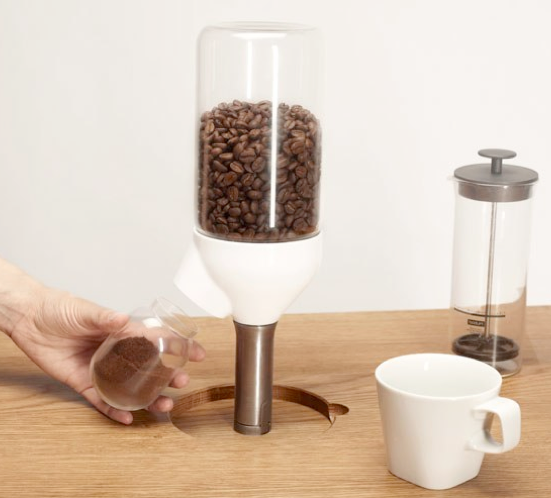 The coffee grinder is storage and mill at once. The bean container and the powder container are made out of glass. There is room for 300g of beans and 10 spoons of powder. The main part of the mill with the grinder is made out of porcelain and closes the whole coffee grinder aroma-tight.